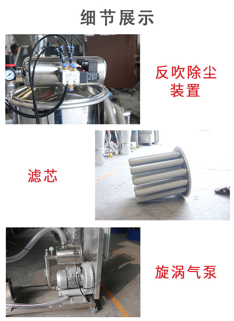 【物料要求】:粉末,顆粒物料 【產品簡述】:真空上料機是一種密封無粉塵遺漏的負壓抽真空上料設備,與混合機,反應釜,振動篩等配套使用...